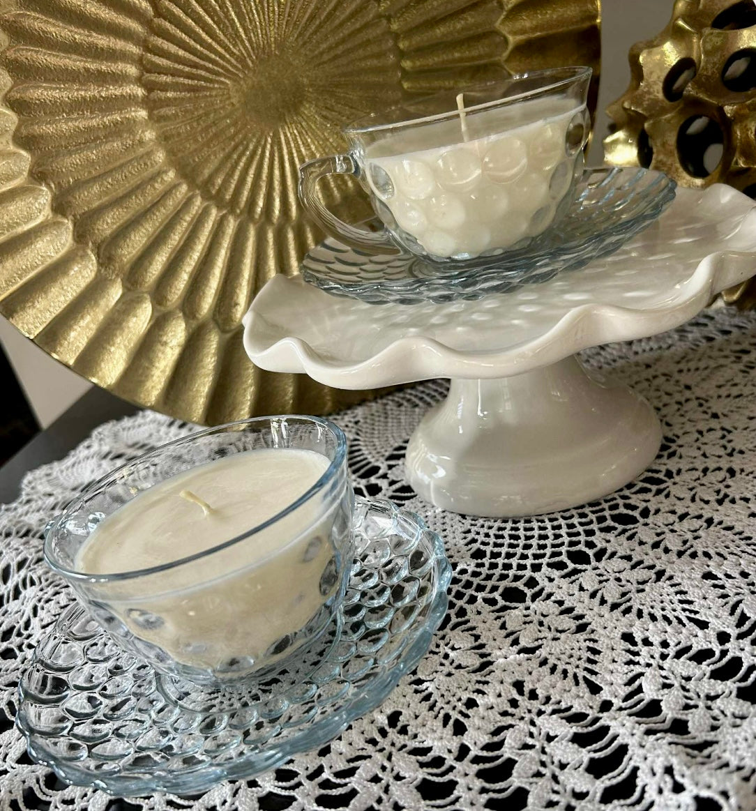 🕯️ Vintage Blue Sapphire Bubble Glass Soy Candle with Matching Saucer Plate
