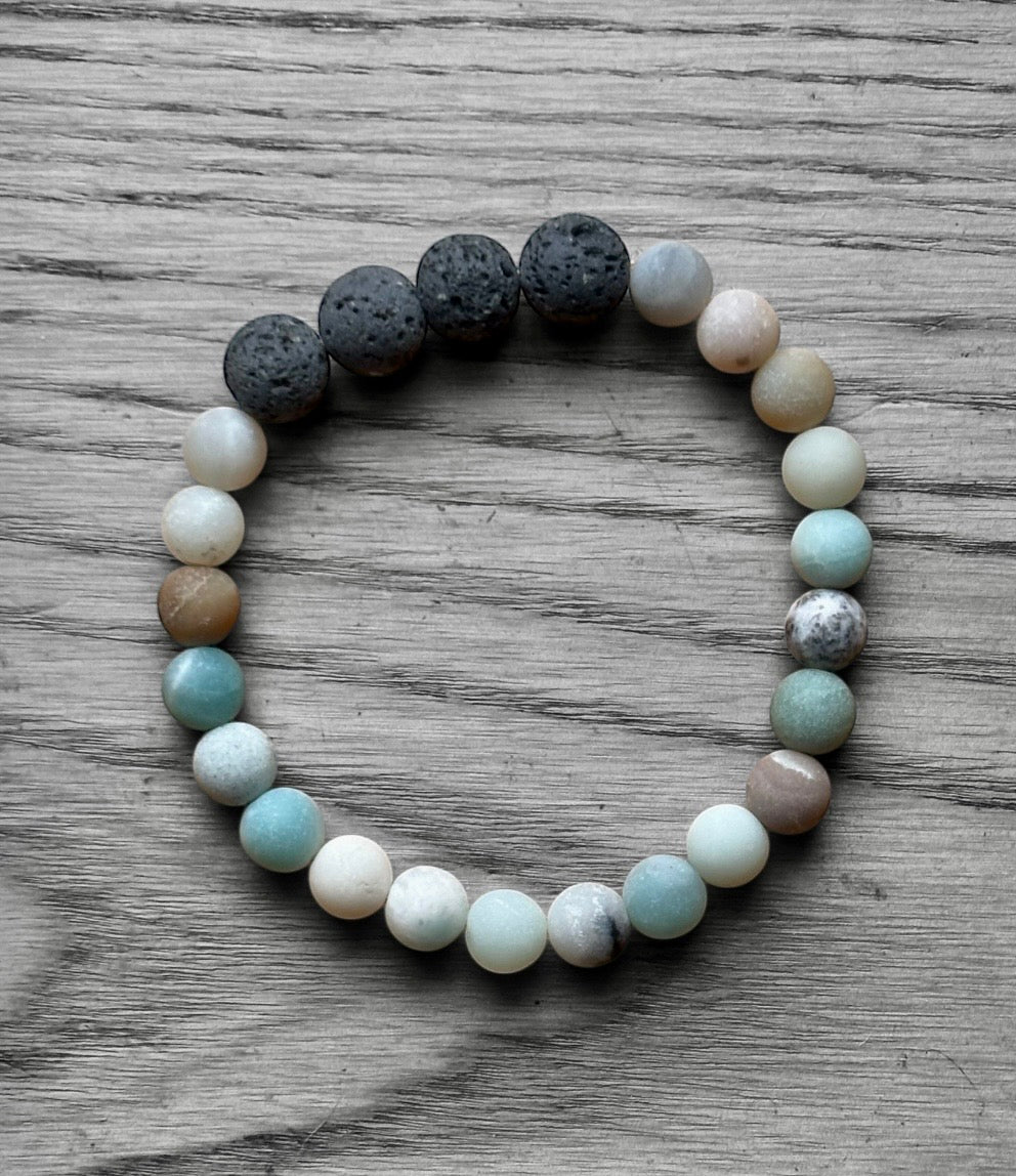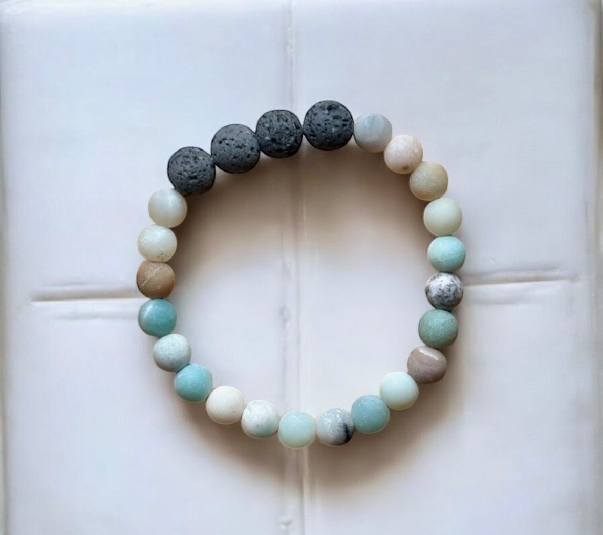 Appliquez quelques gouttes d'huile essentielle sur les perles de roche volcanique et laissez sécher avant de les porter. Renouvelez l'application si nécessaire. Taille unique.